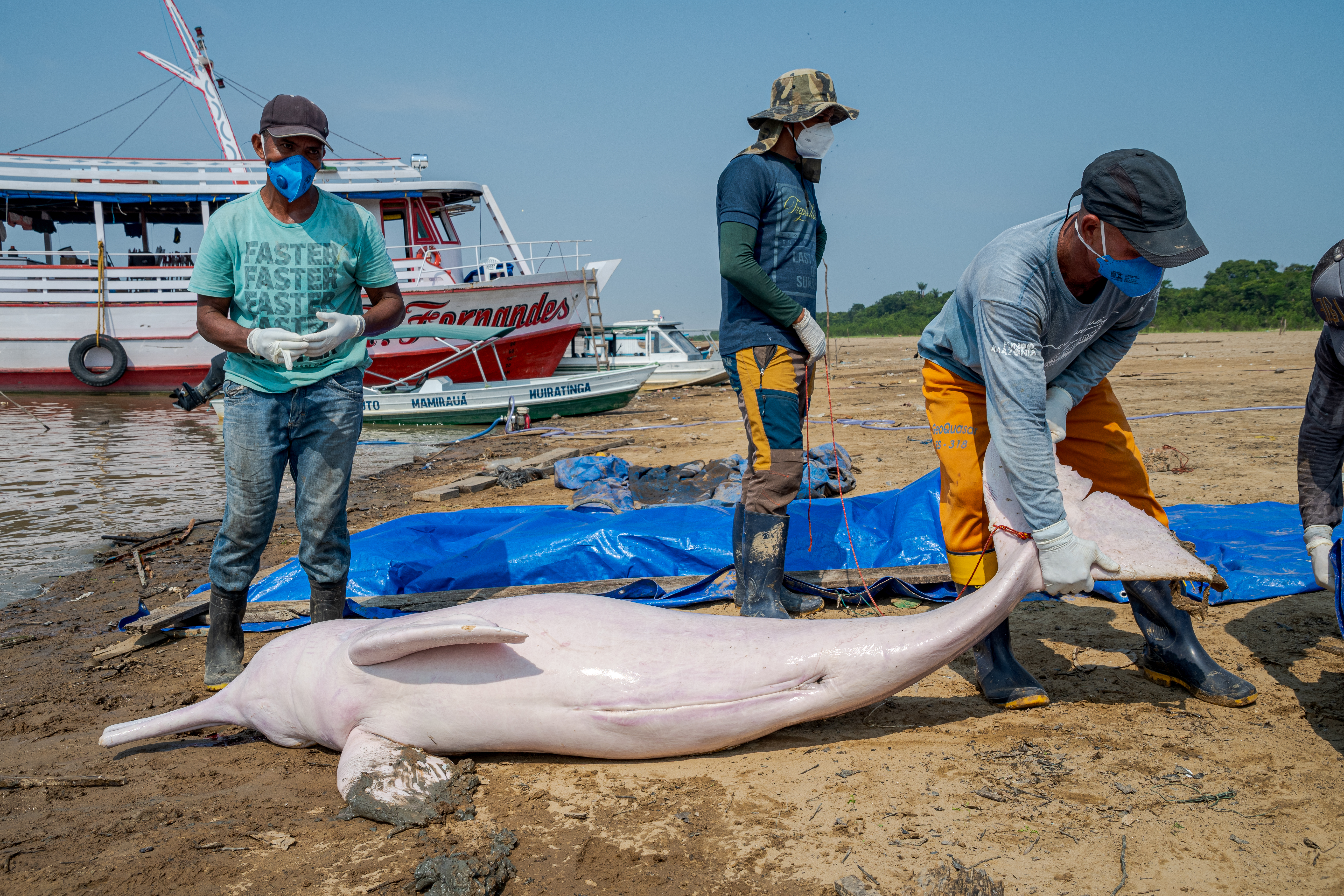 Pesquisa liderada pelo Instituto Mamirauá com participação do Inpa relaciona fatores climáticos e hidrológicos às mortes de botos e peixes na Amazônia (Foto Miguel Monteiro/Instituto Mamirauá)